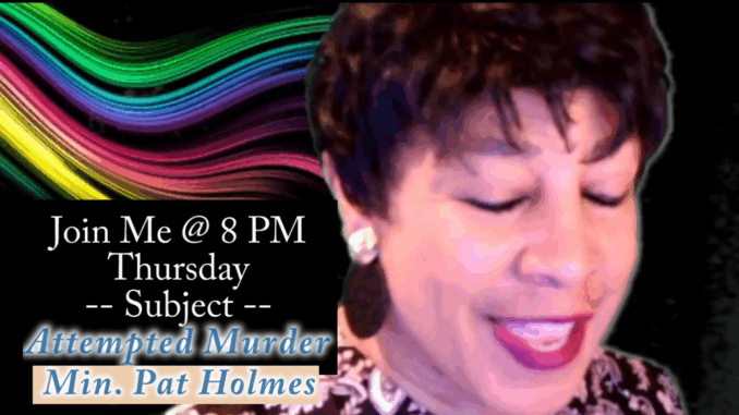 Join me Thursday at 8 PM on my public Facebook page at Pat Holmes Speaks!